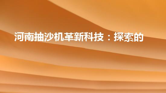 河南抽沙機革新科技:探索的未來?